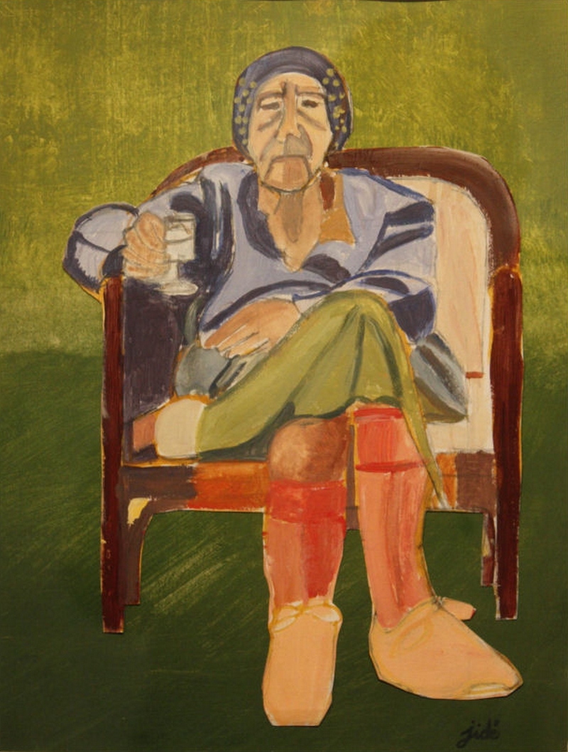 Germaine sur fond vert acrylique sur papier, 25 x 20, 2008 (V)